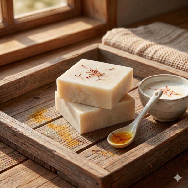 Experience the purity of nature with our Goat Milk Saffron Soap, thoughtfully crafted using nourishing natural ingredients to cleanse, hydrate, and care for your skin every day.